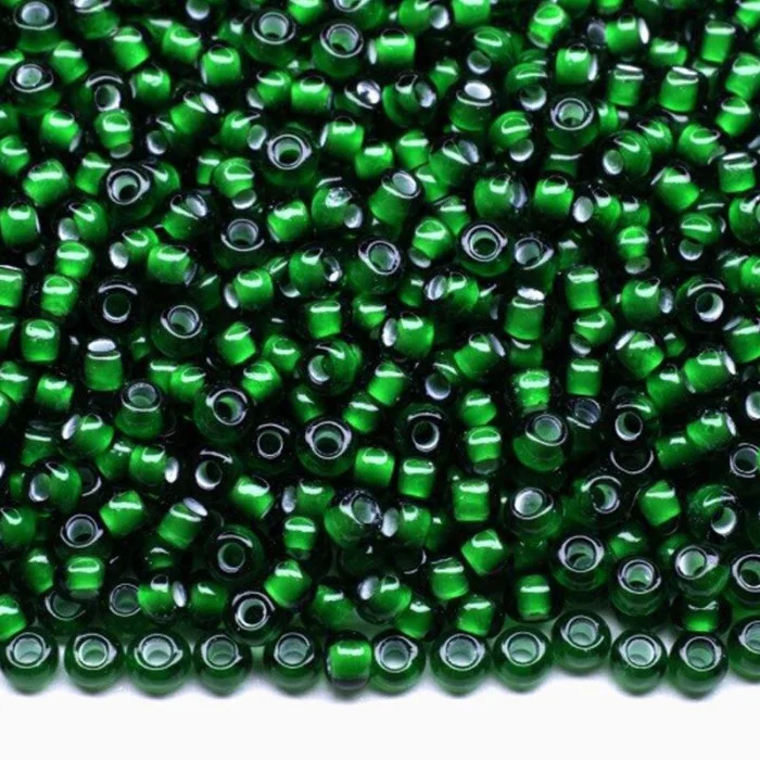 55066 10/0 чеський бісер Preciosa, зелений, прозорий з білим отвором