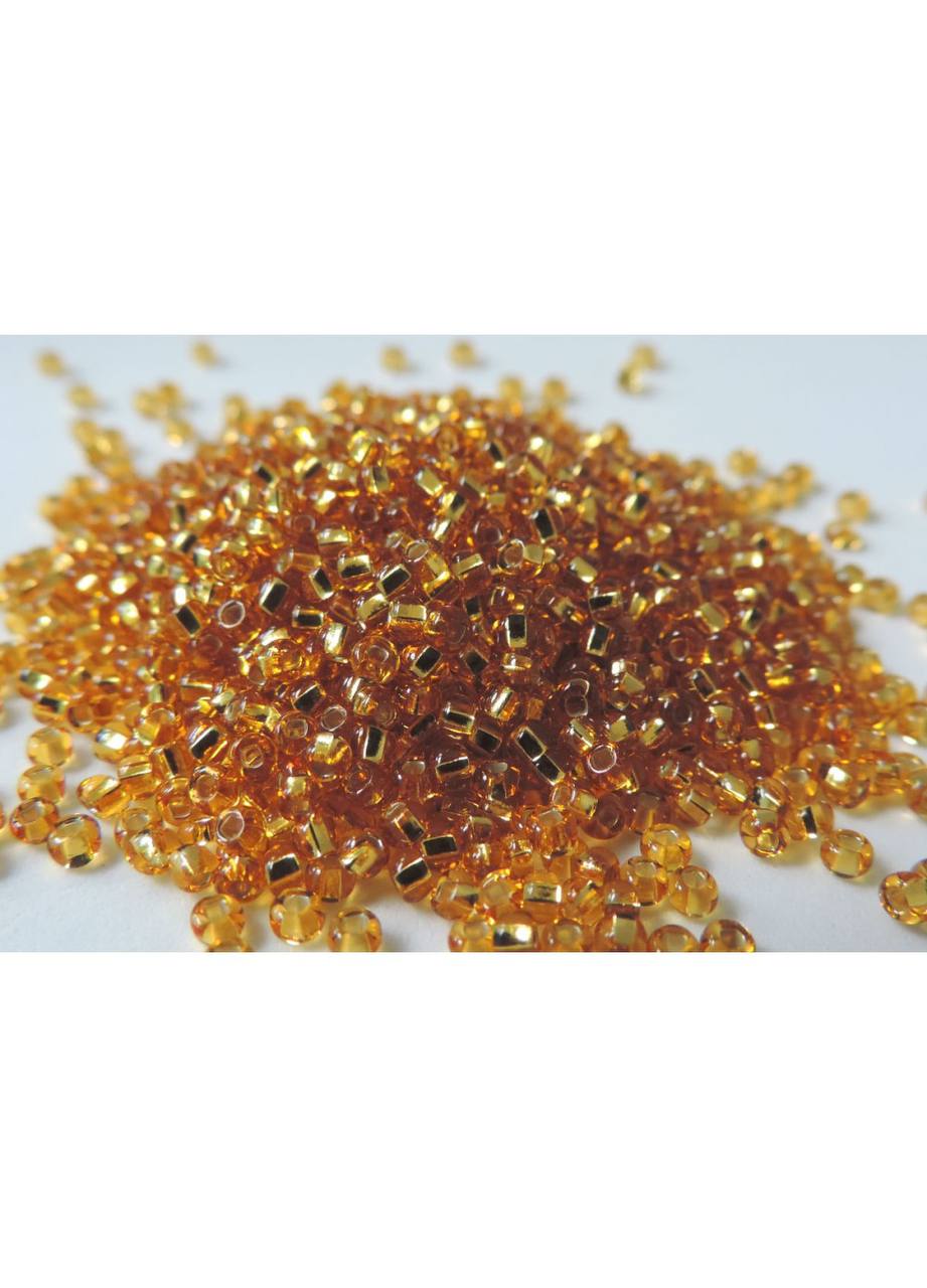 17050 6/0 чеський бісер Preciosa, бурштин, прозорий з блискучим срібним отвором