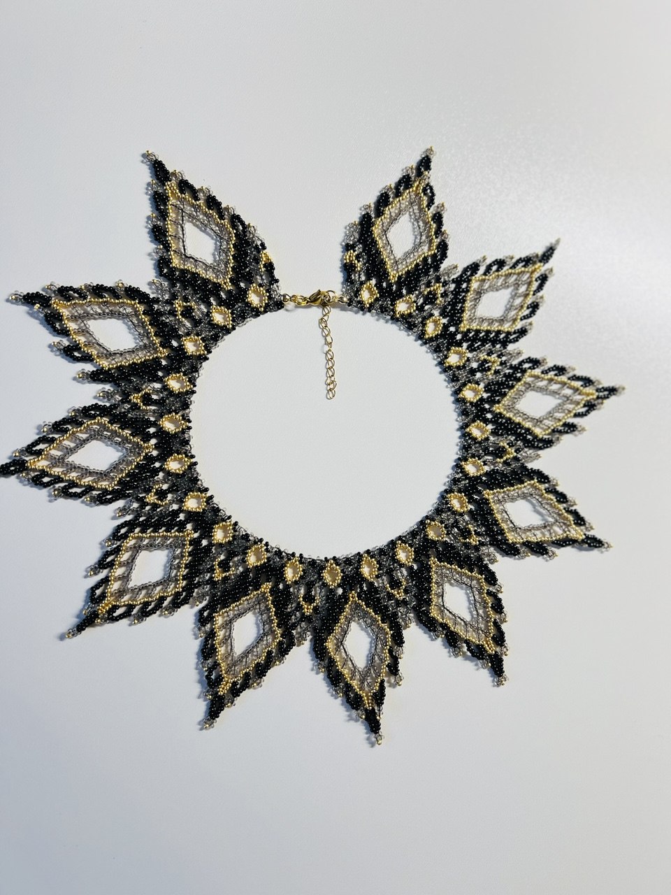 Силянка ”Едельвейс” за схемою Наталія Гаврилів ( чорна, сірий прозорий, золото мюкі)